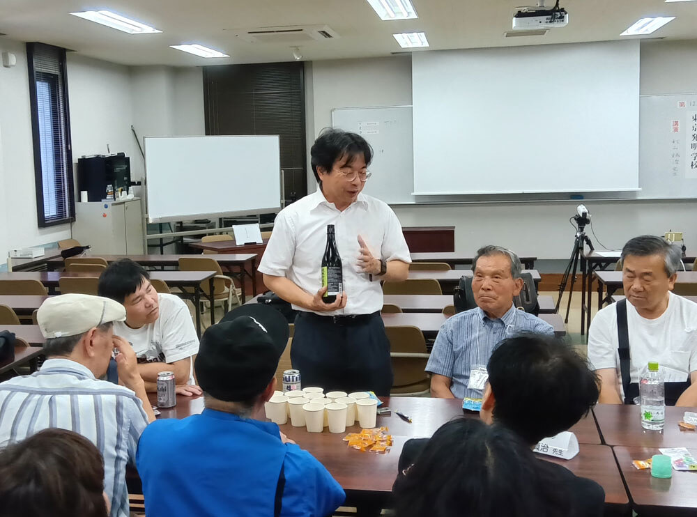 終了後の懇親会では、利き酒師でもある秋山さんに、日本酒オープナーの実演や日本酒に関する興味深い話をしていただき、会場はいつも以上に盛り上がりを見せました。